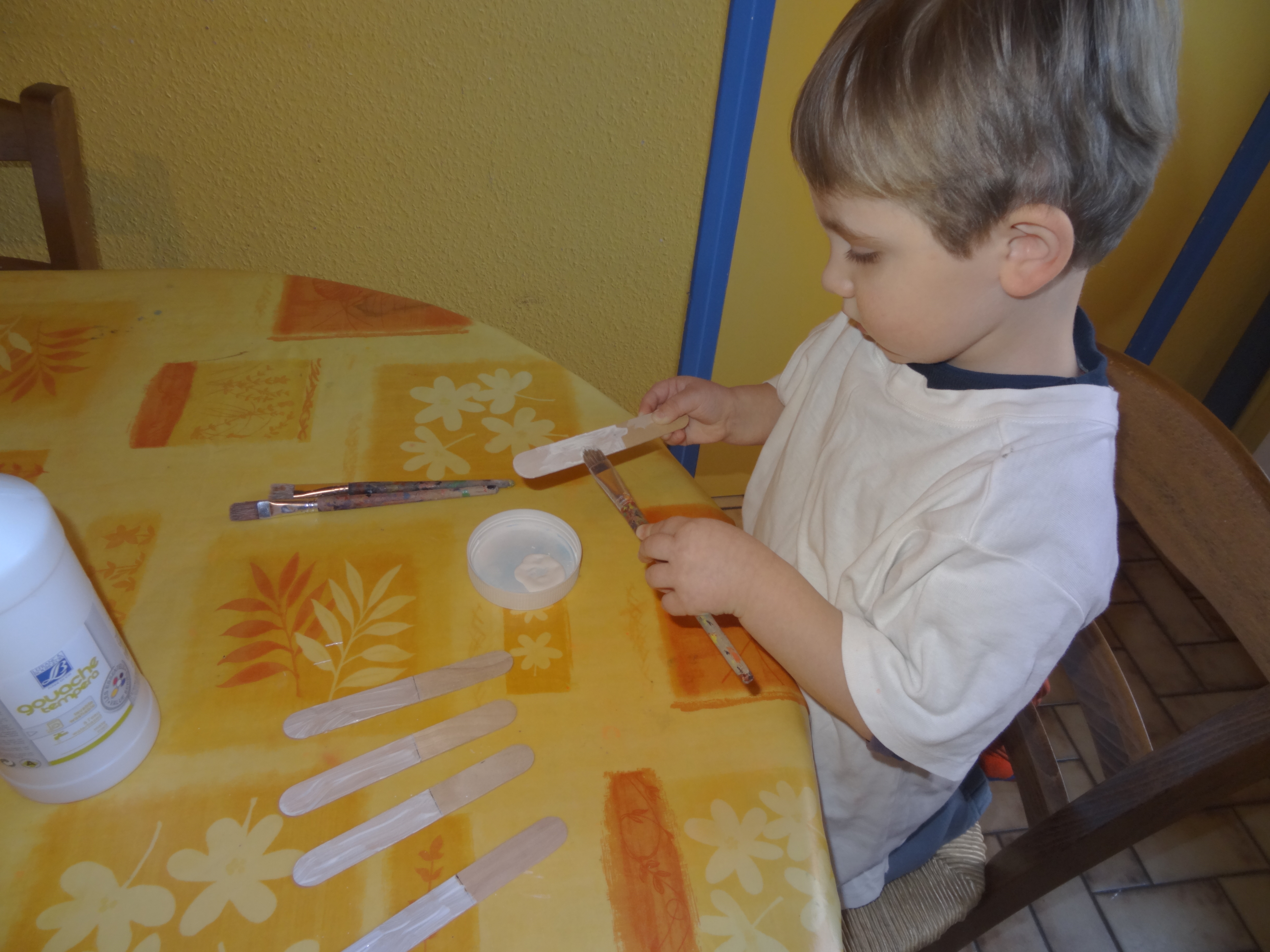 Pour cela, nous avons utilisé 6 abaisses-langues que Léopold a peint...