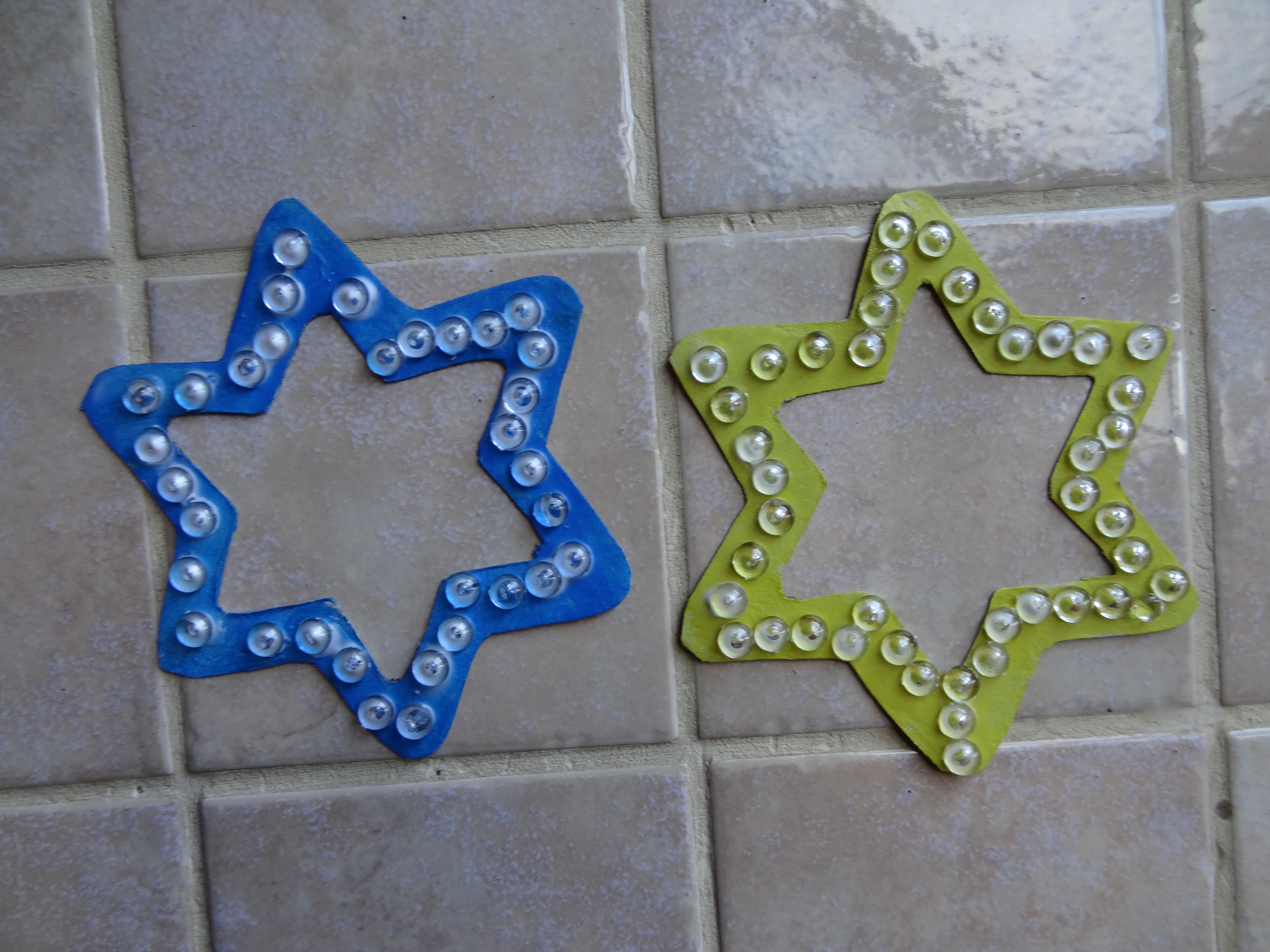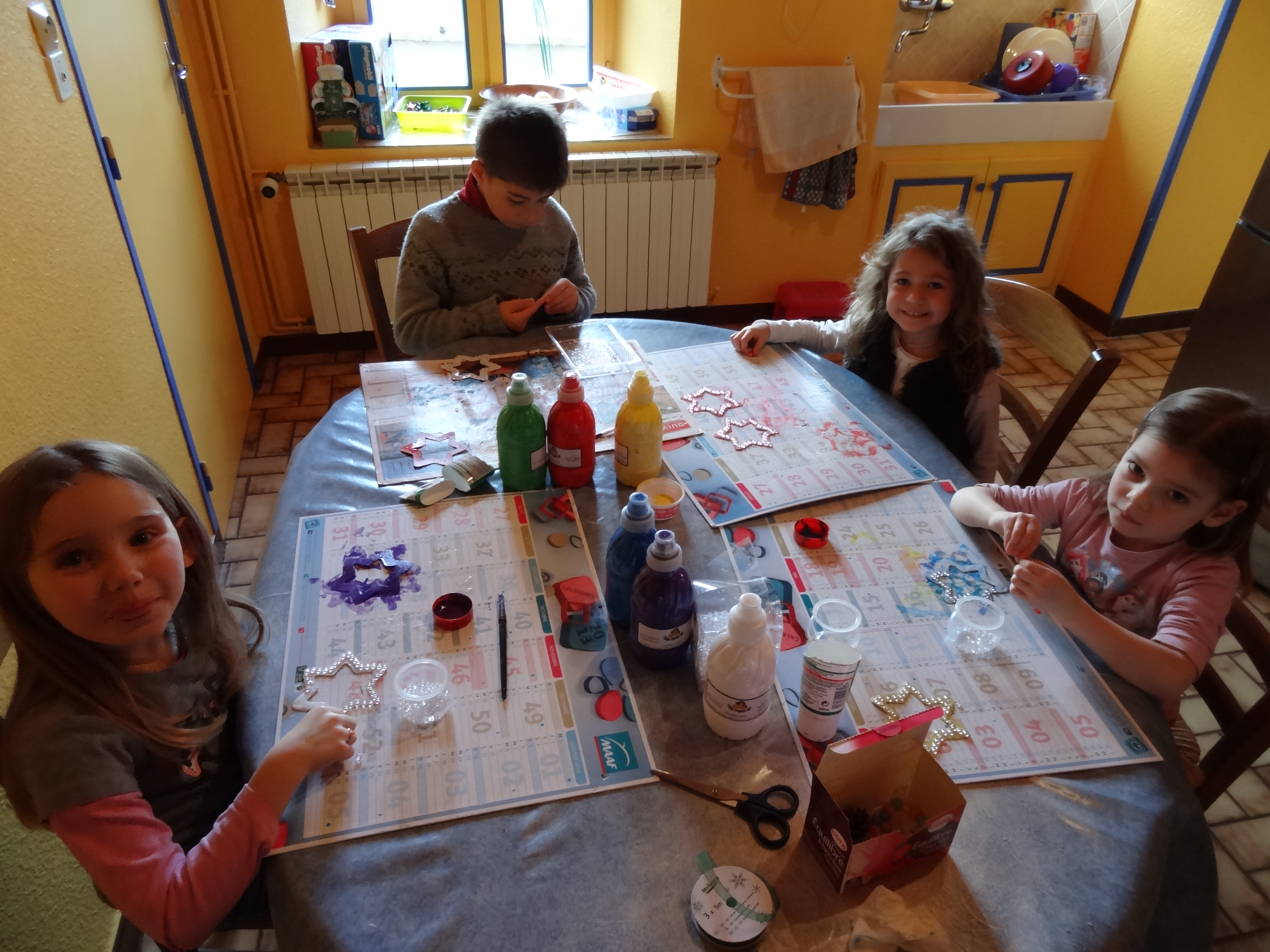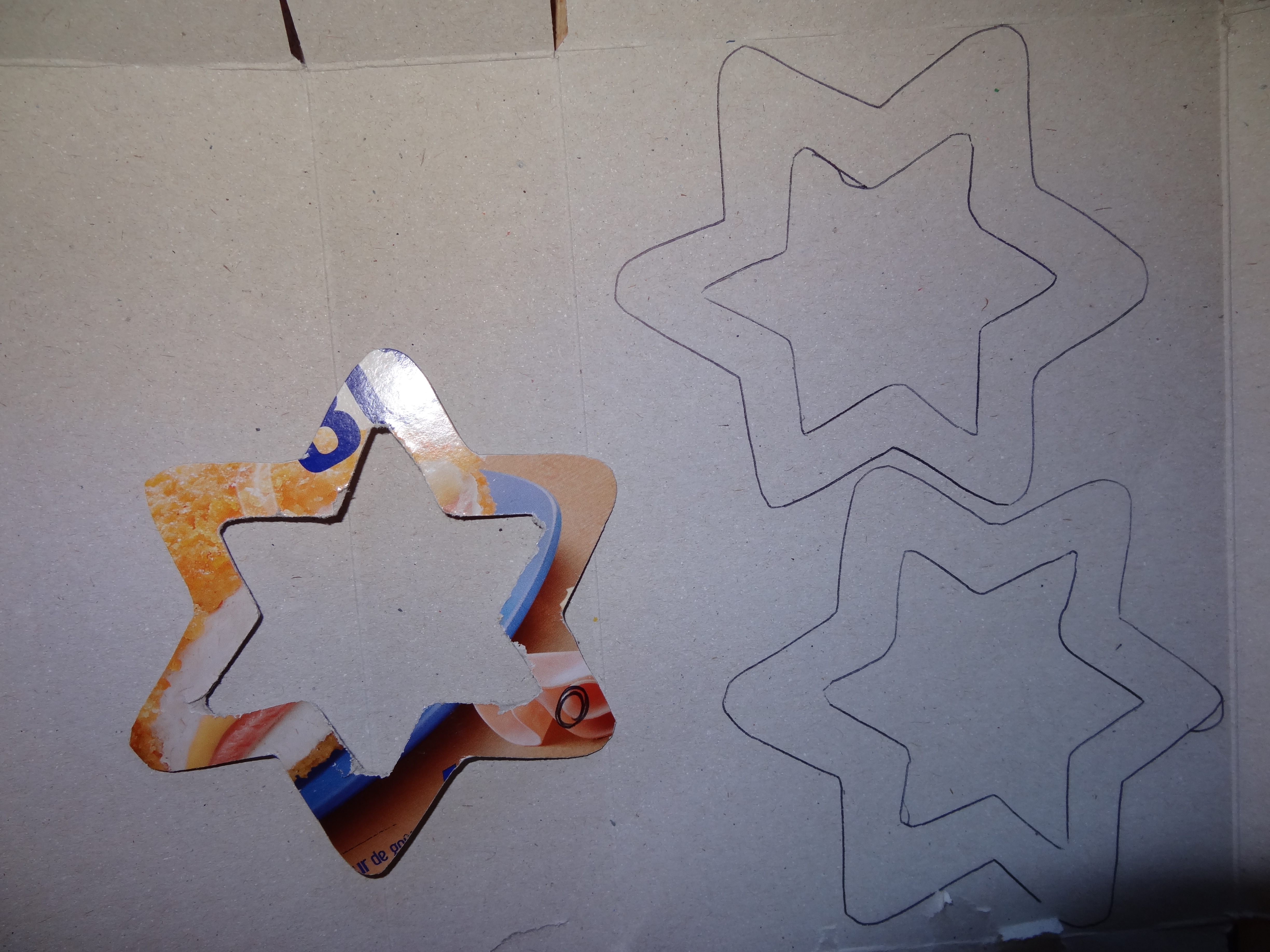Aujourd'hui, nous avons décoré des étoiles que j'avais préalablement découpées dans du carton d'emballage...