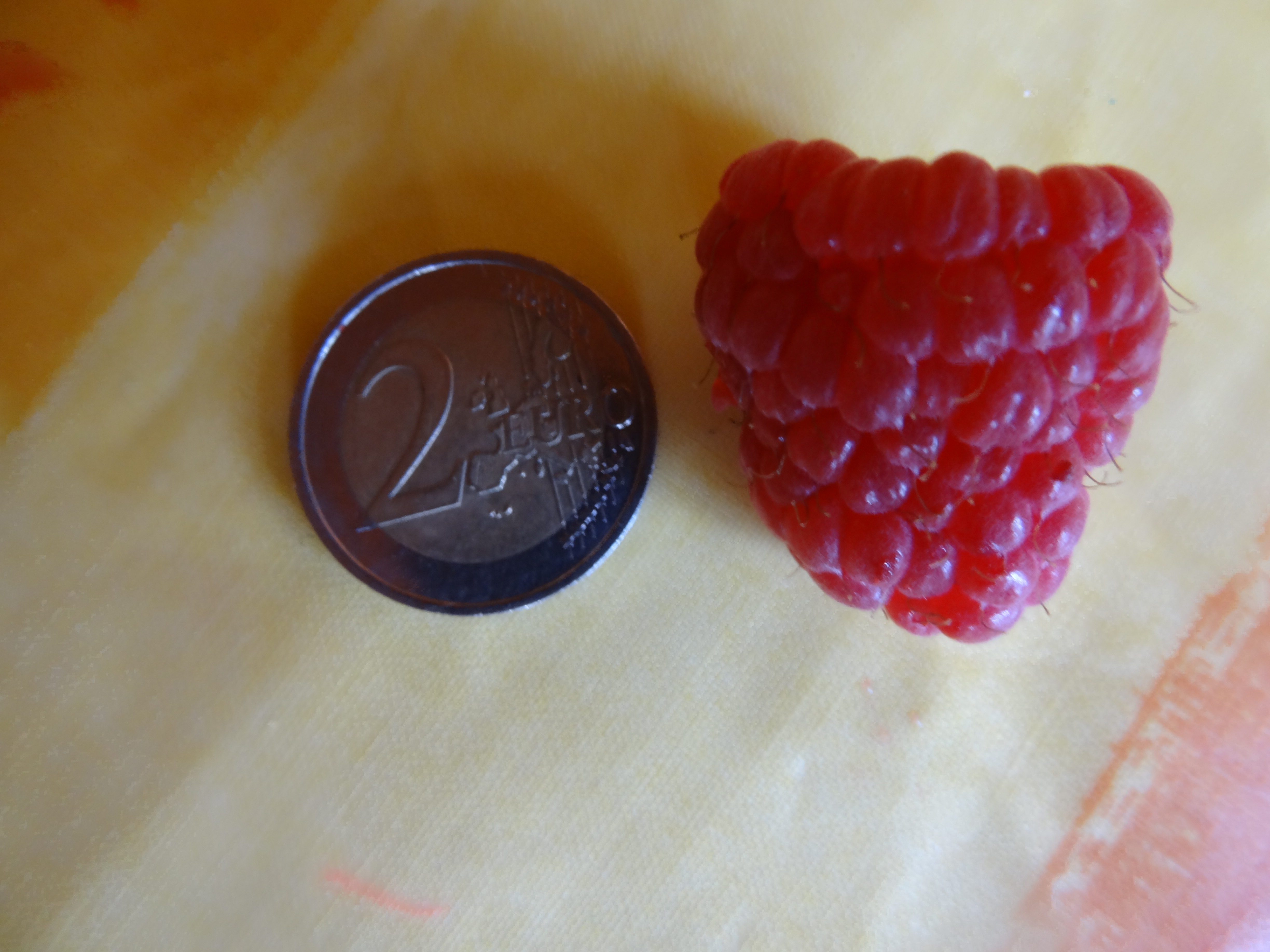 Pour vous rendre compte de la grosseur de nos très bonnes framboises bien sucrées...