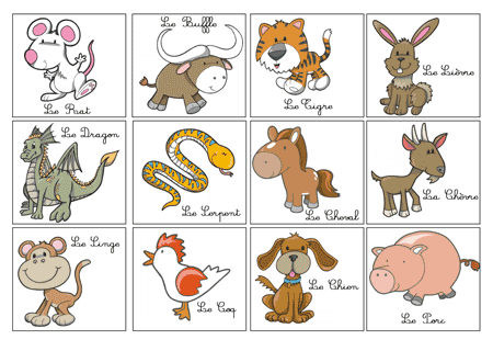 Par contre, l'astrologie chinoise, c'est 12 signes aussi mais un par an donc Océane et Léane qui sont nées la même année sont du signe du rat, Flora est le chien et Romain a le même signe que nounou qui est le coq!