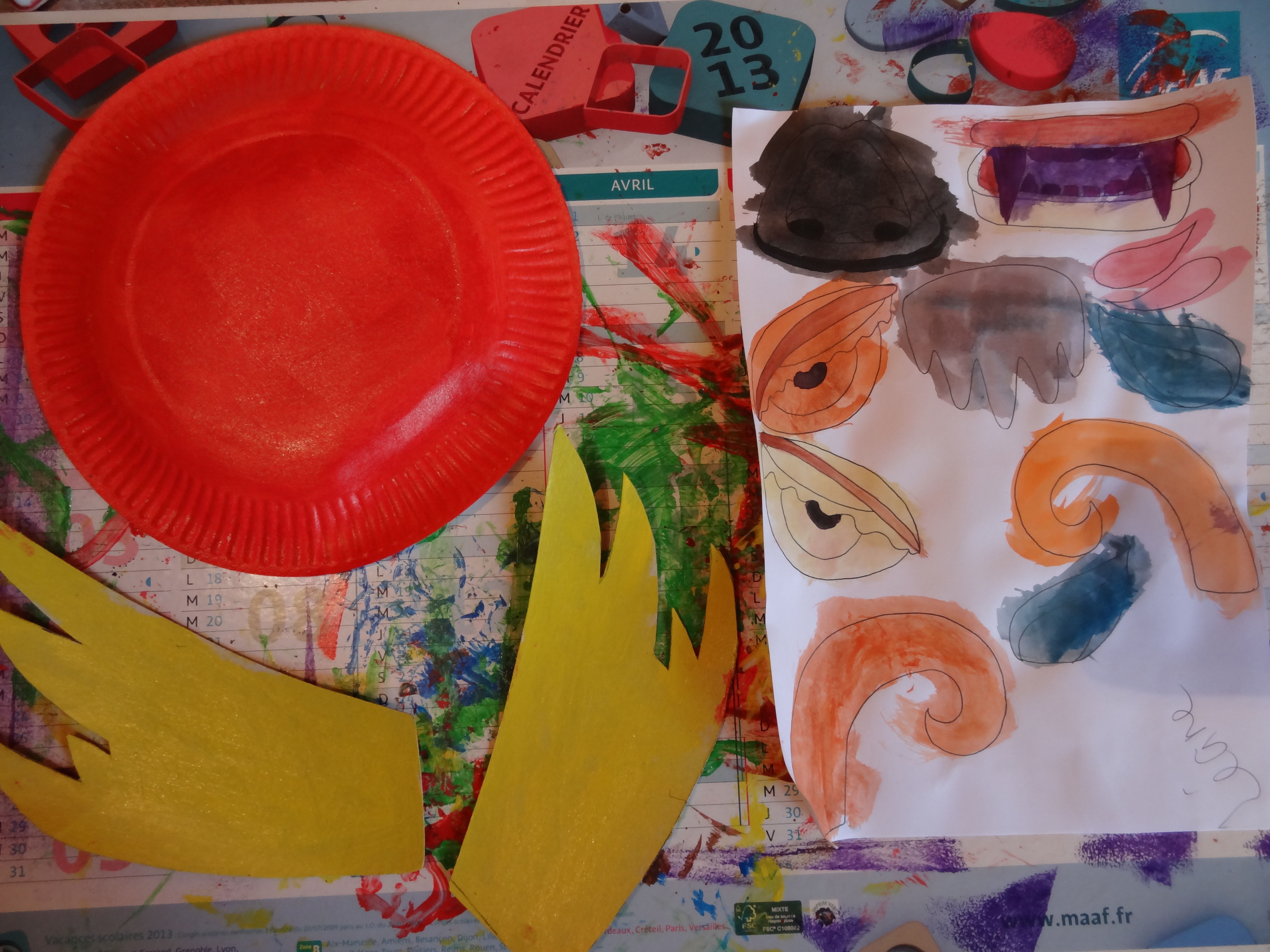 Pour notre nouveau bricolage sur le nouvel an chinois, j'ai choisi de leur faire faire une tête de dragon...