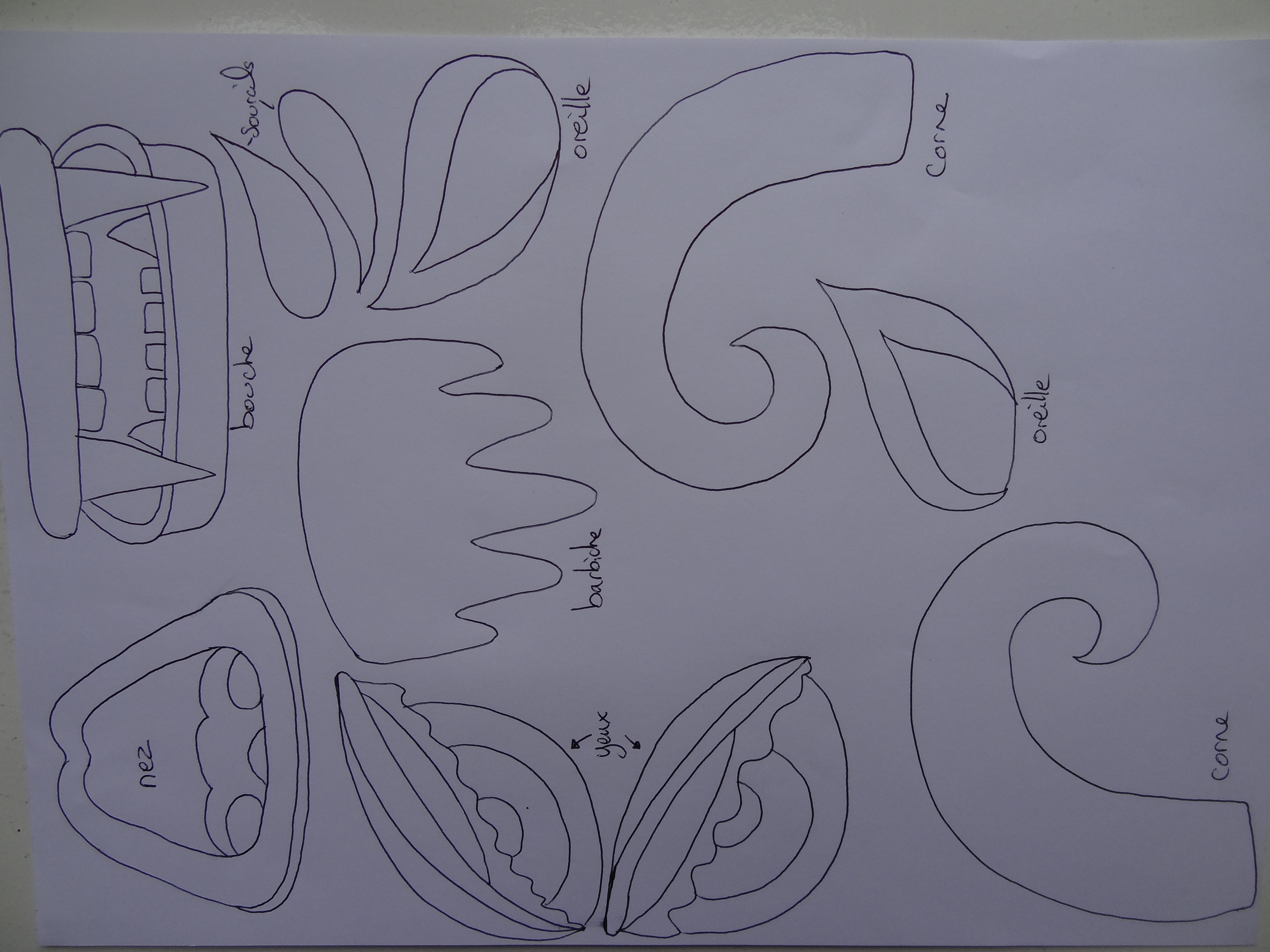 Ils ont également peint un "cône" qui servira pour la queue et une tête que j'ai trouvé sur internet et dont je vous mets le gabarit :