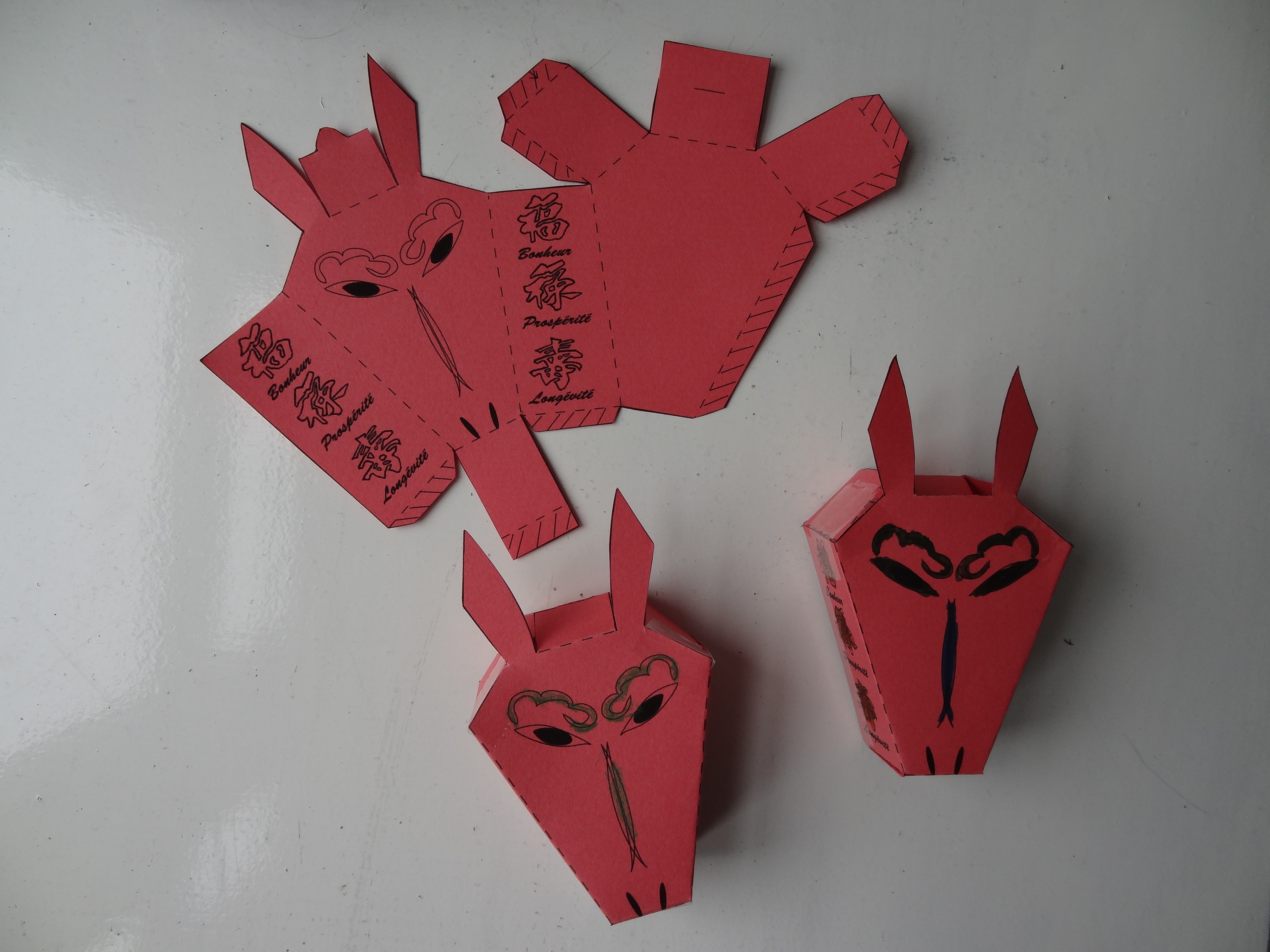 Du coup, je lui ai proposé de faire une petite chinoise en volume dont j'ai vu l'idée sur le blog de tata02310...