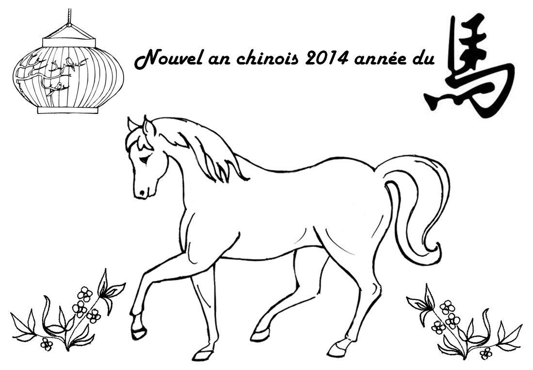 Le coloriage avec le cheval est celui de nounou80 (voir un autre article) et voici celui des petits chinois que j'ai trouvé sur le net...